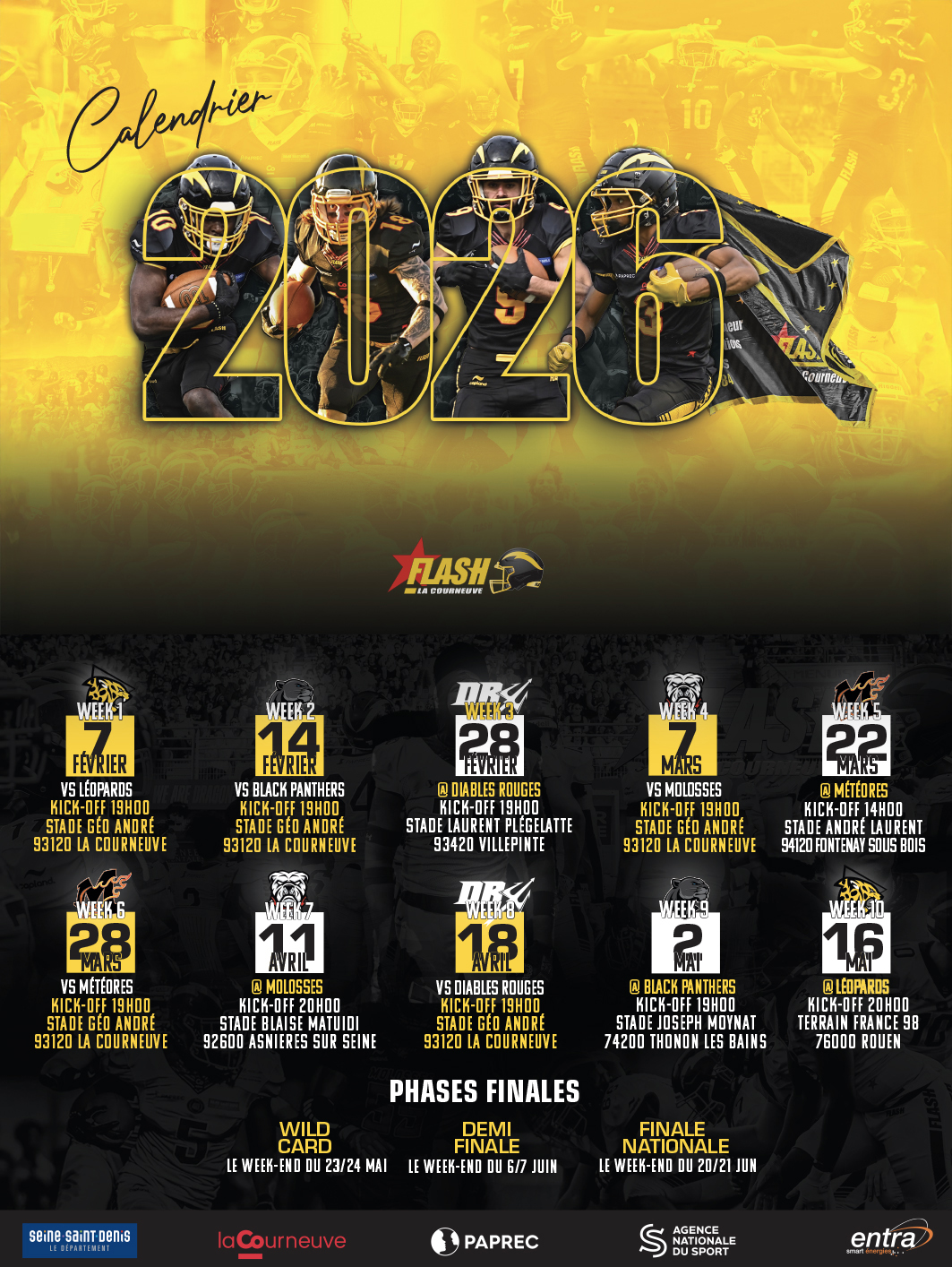 Le 7 février, le Flash ouvrira le championnat à domicile en affrontant les Léopards de Rouen à 19h. Un premier rendez-vous à ne pas manquer pour lancer la saison tous ensemble !
