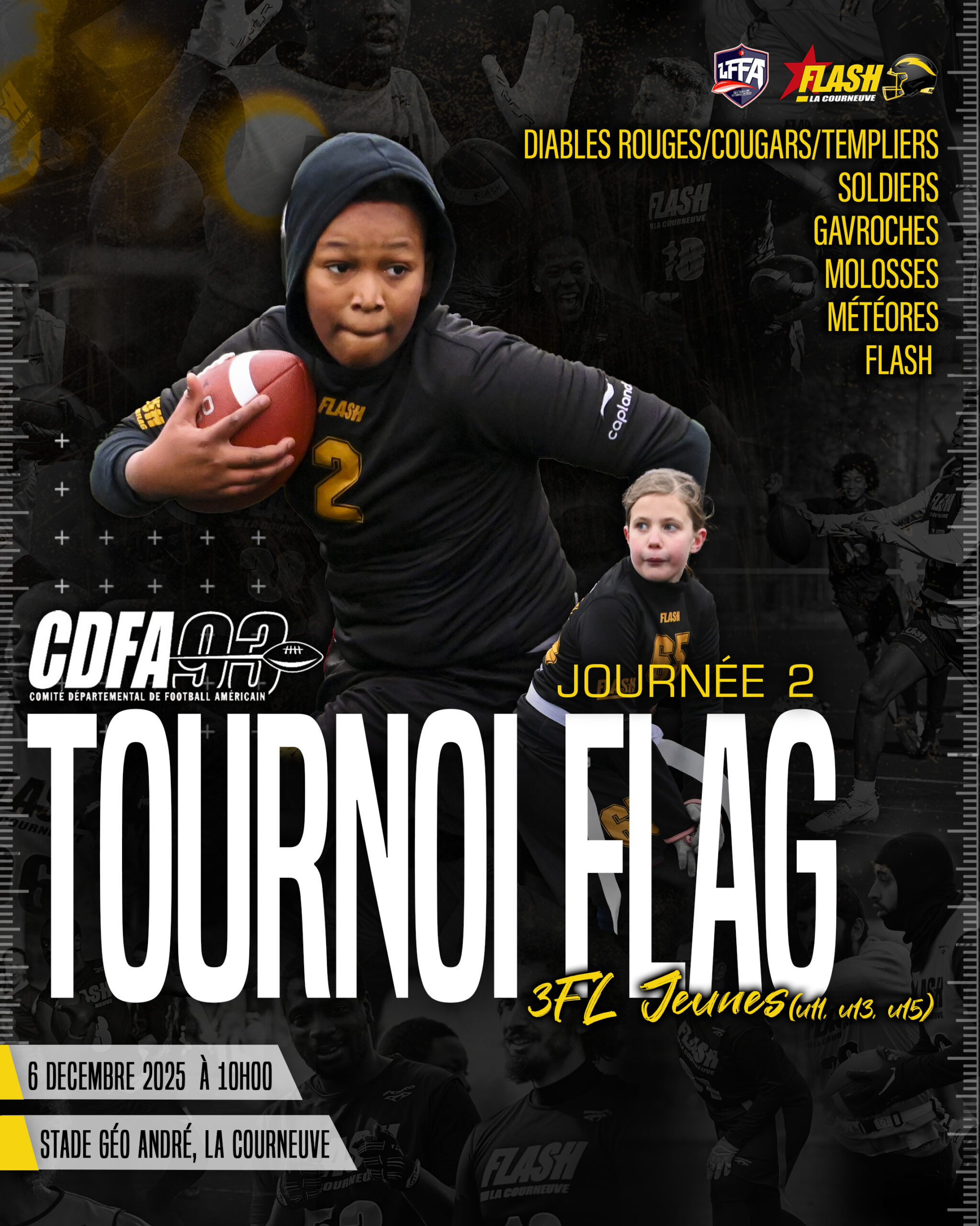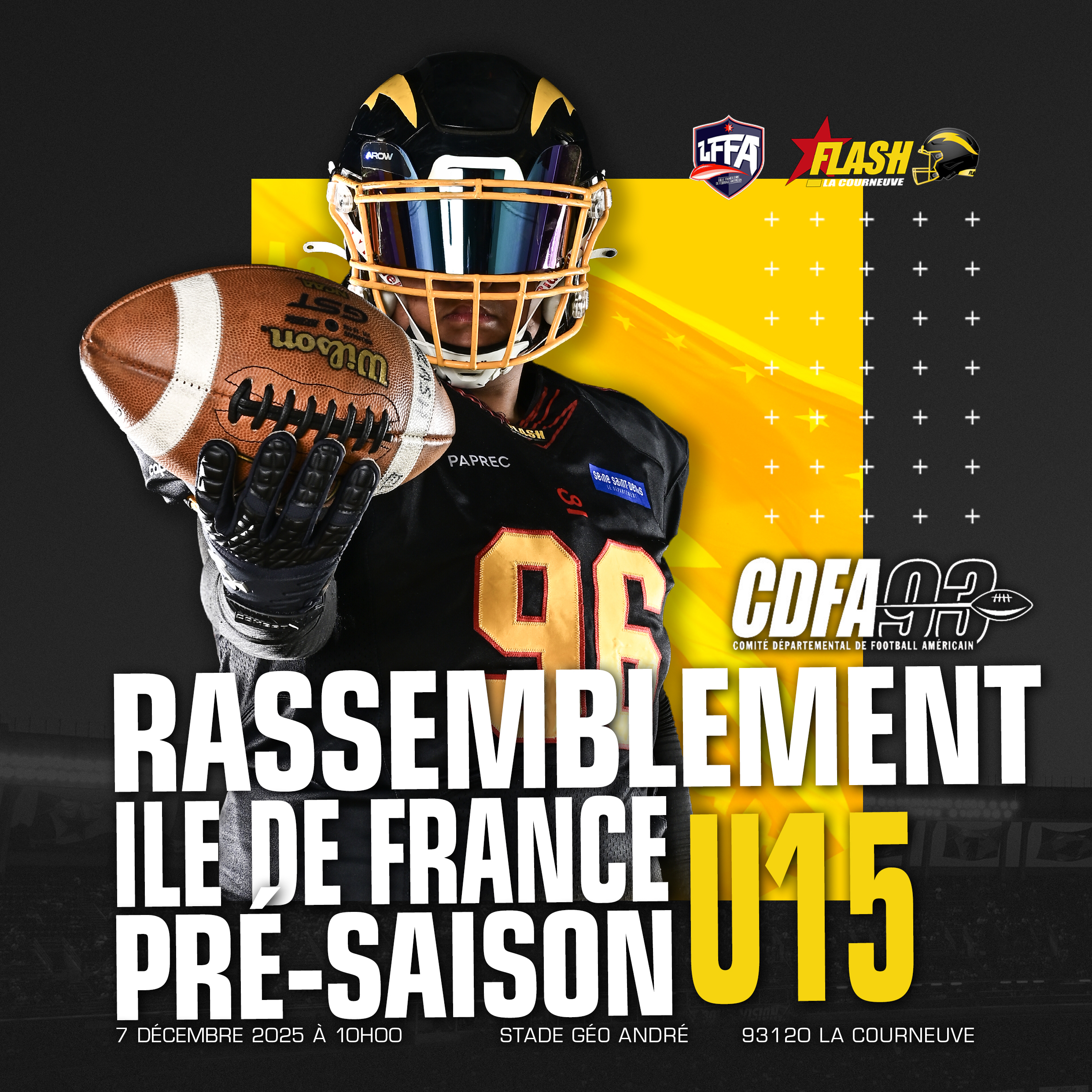 Organisé par la Ligue Francilienne de Football Américain et accueilli par le Flash en partenariat avec le CDFA 93, ce rassemblement est ouvert à tous les licenciés U15 Football Américain d’Île-de-France.