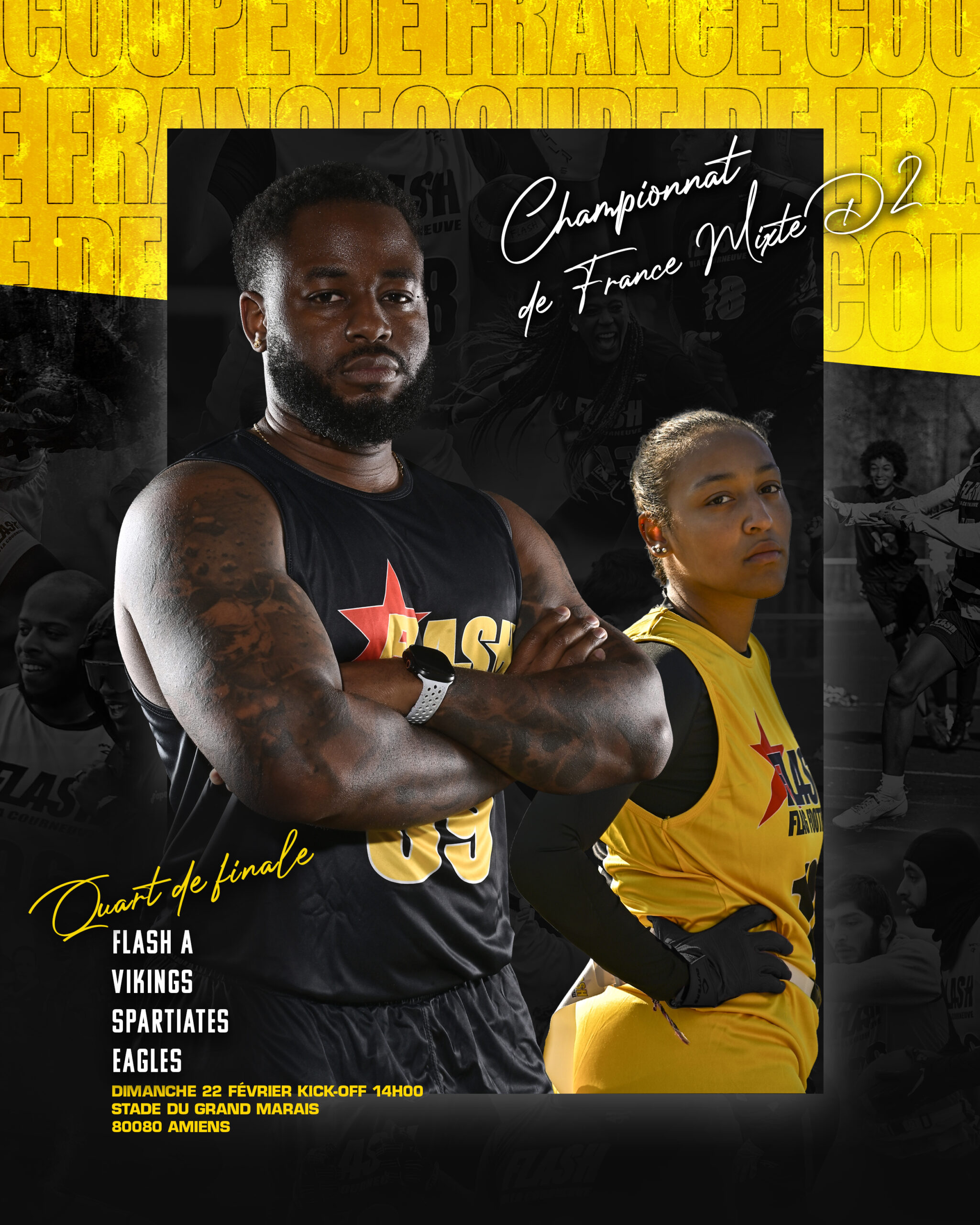Ce dimanche 22 février, l’équipe senior de flag Flash A disputera la J2 des quarts de finale du championnat de France D2 mixte.
