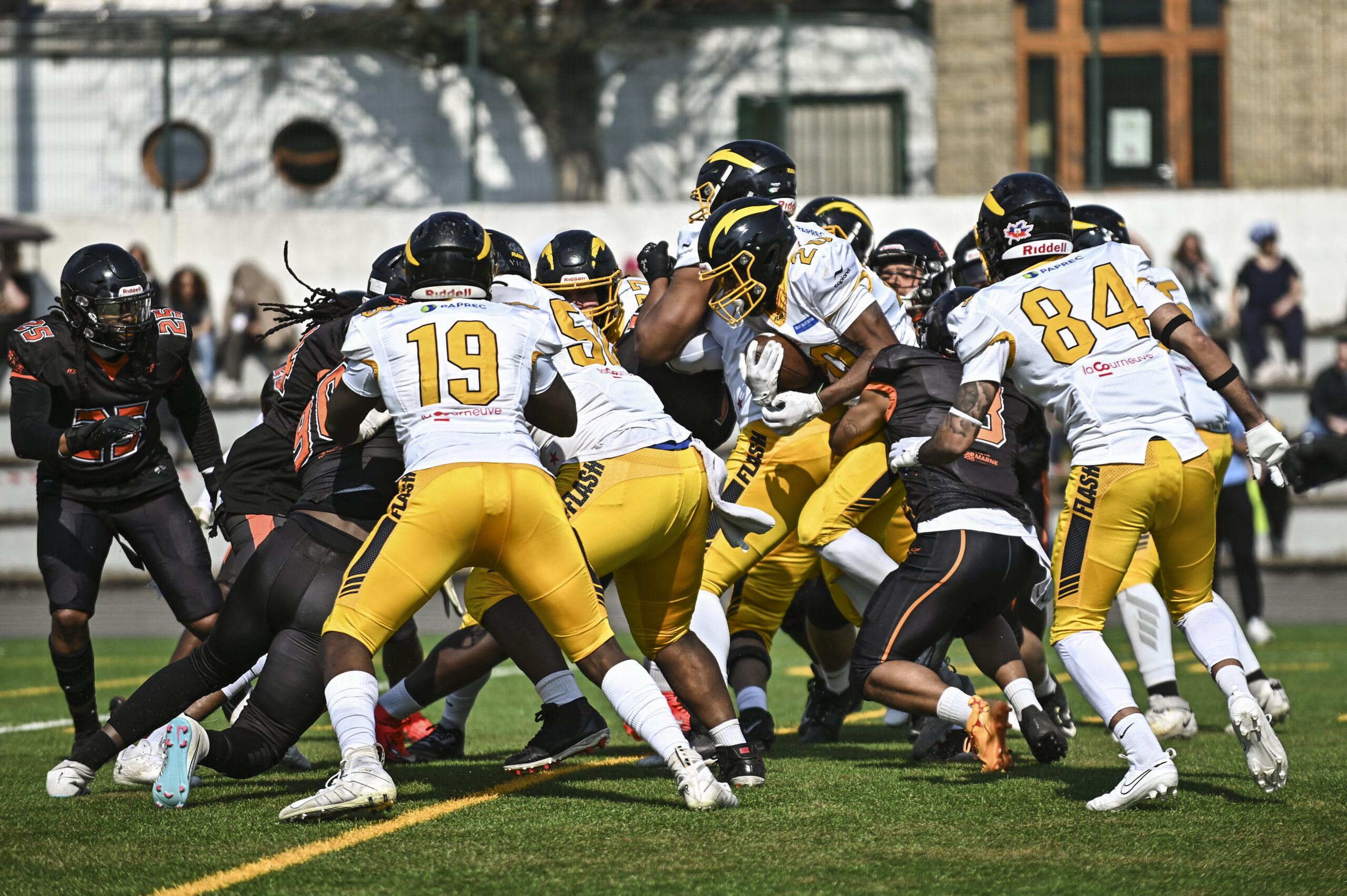 La journée s’est conclue avec le match des U18, à l’occasion de la 5ᵉ journée du championnat territorial. Nos jeunes Noir et Jaune recevaient les Cougars de Saint-Ouen-l’Aumône pour une rencontre attendue. Le match s’est soldé par une belle victoire sur le score de 27 à 6. Ce succès marque une 5ᵉ victoire consécutive pour les U18, qui restent ainsi invaincus et conservent la tête du championnat.