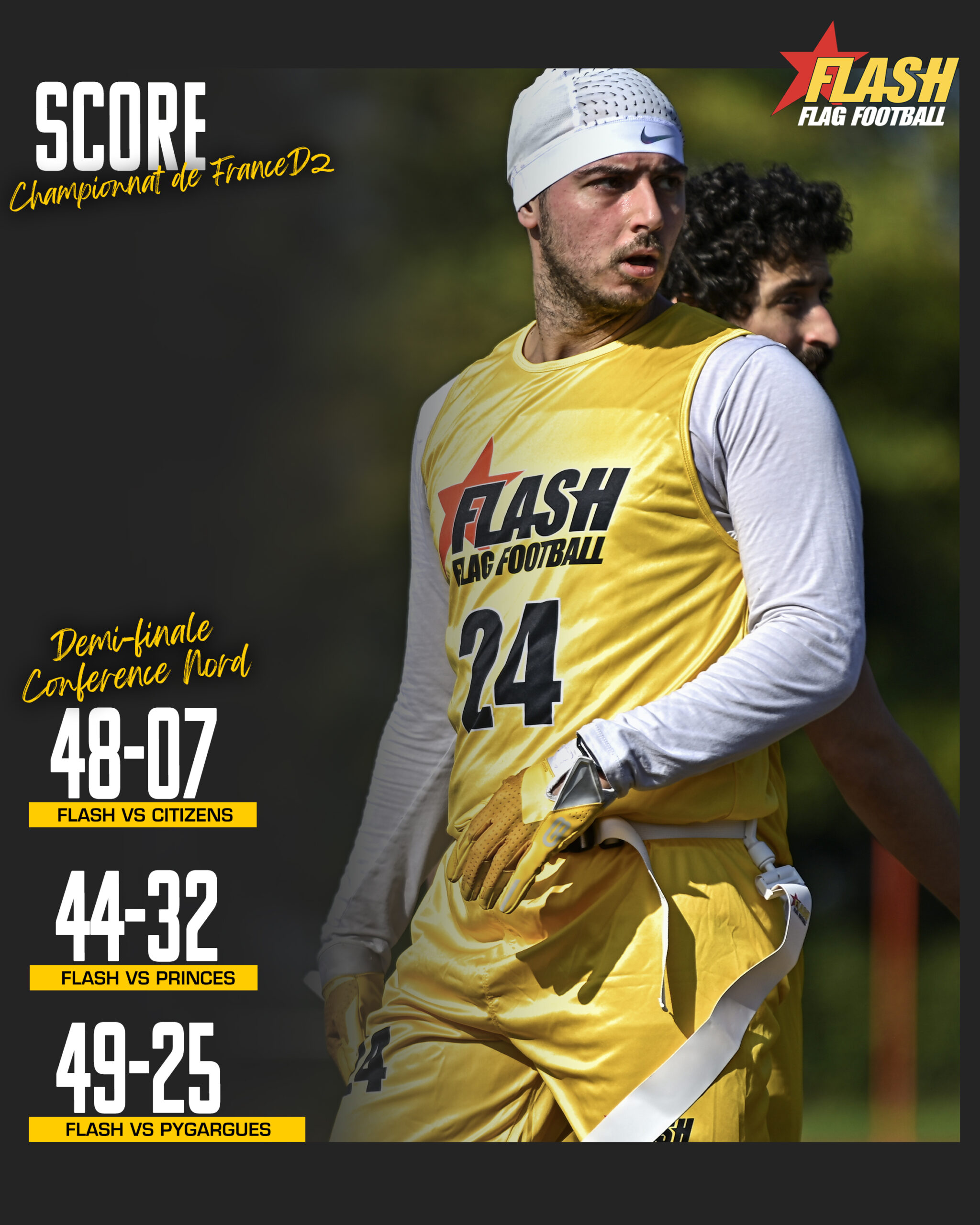 Lors de la demi-finale de la conférence Nord du championnat de France de flag football mixte D2, nos joueurs ont brillé en remportant leurs trois matchs de la journée.