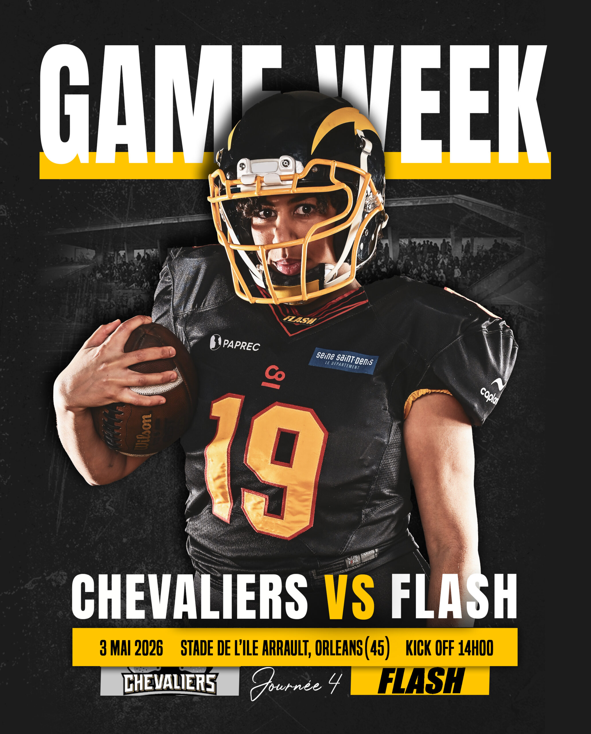 Le 18 avril à 19h00, venez assister au 8ᵉ match du championnat national Élite « Casque de Diamant 2026 » qui opposera le Flash aux Diables Rouges au Stade Géo André à La Courneuve !