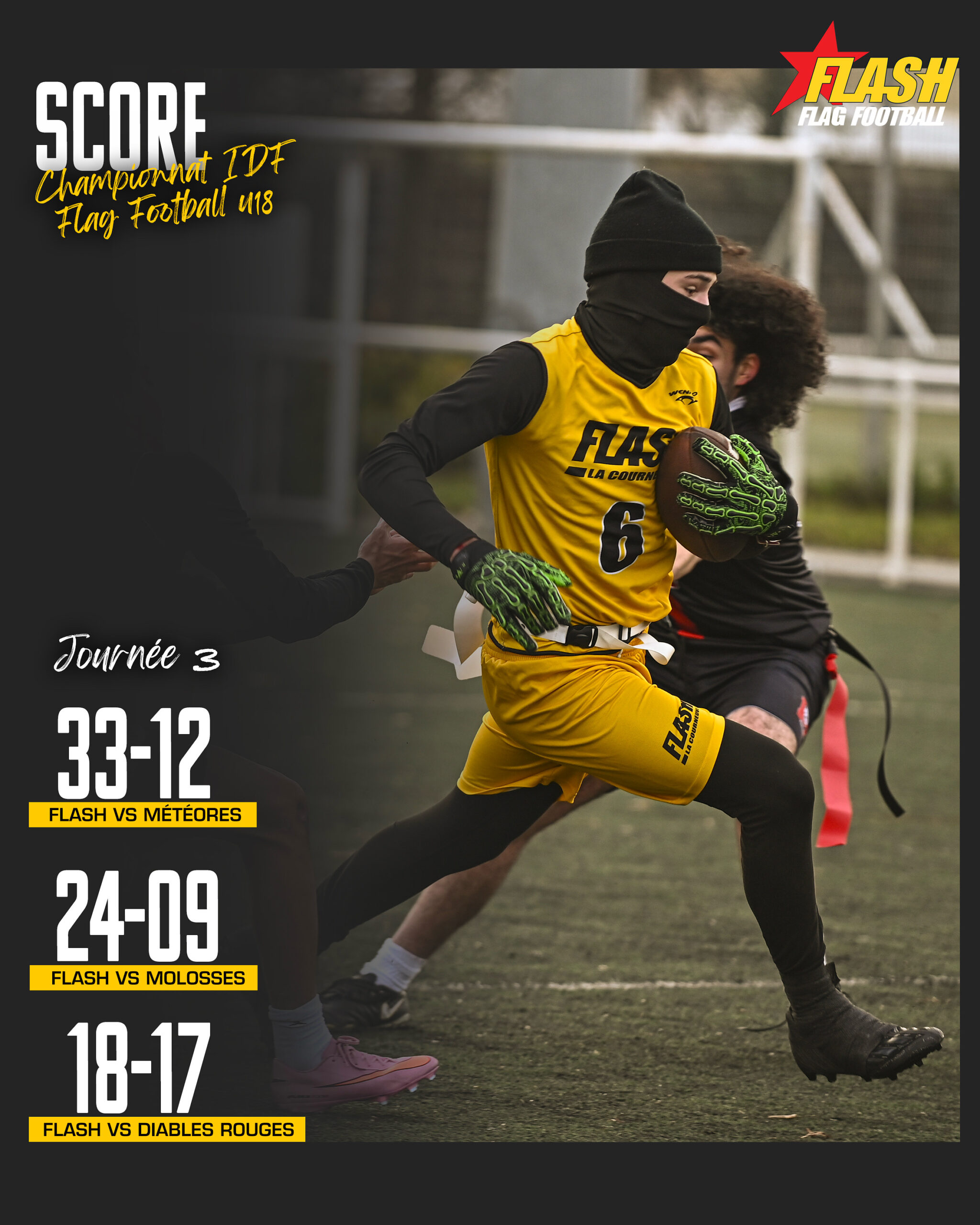 Pour cette troisième journée, le flash accueillera les Météores de Fontenay-sous-Bois, les Diables Rouges de Villepinte et les Molosses d’Asnières-sur-Seine.