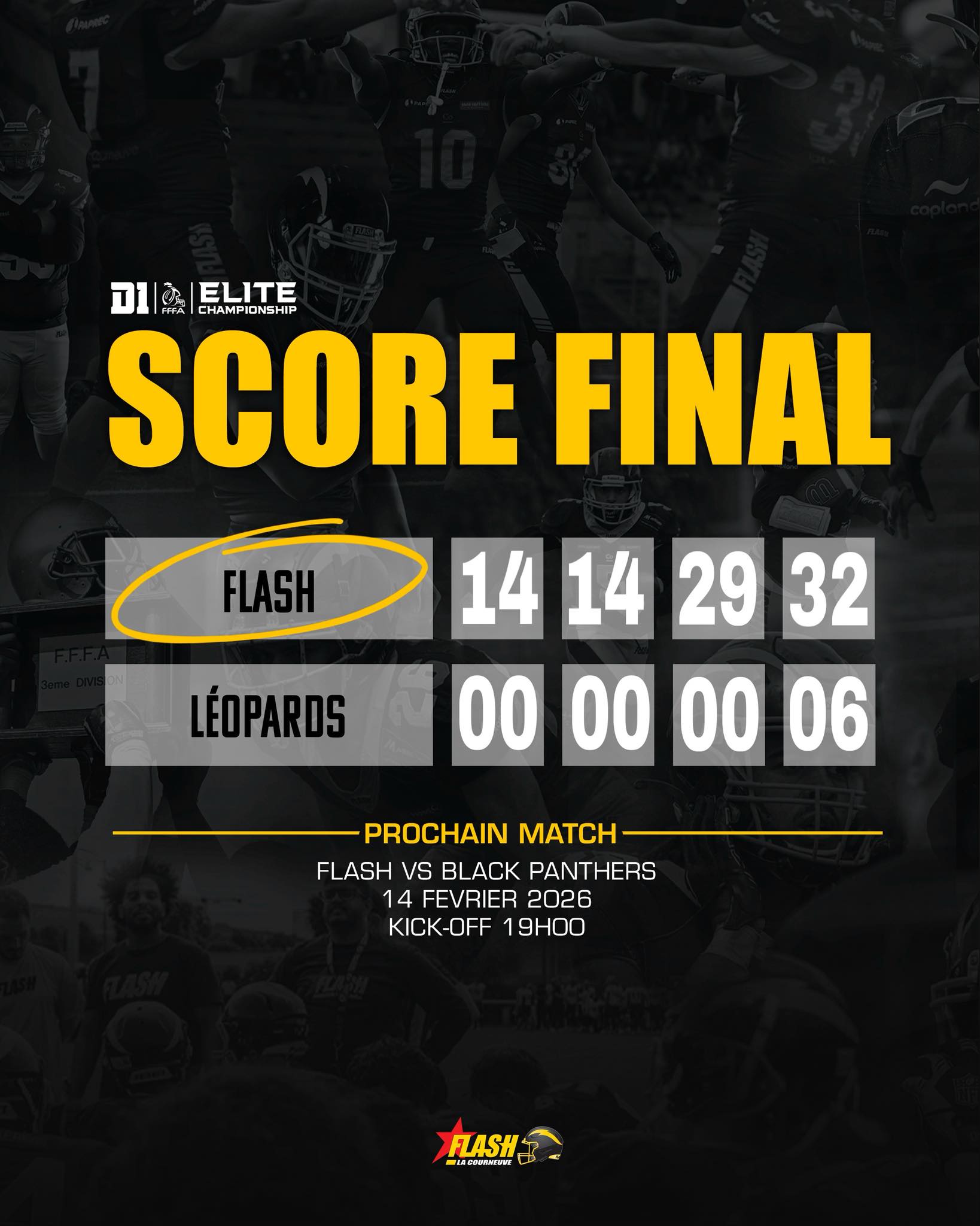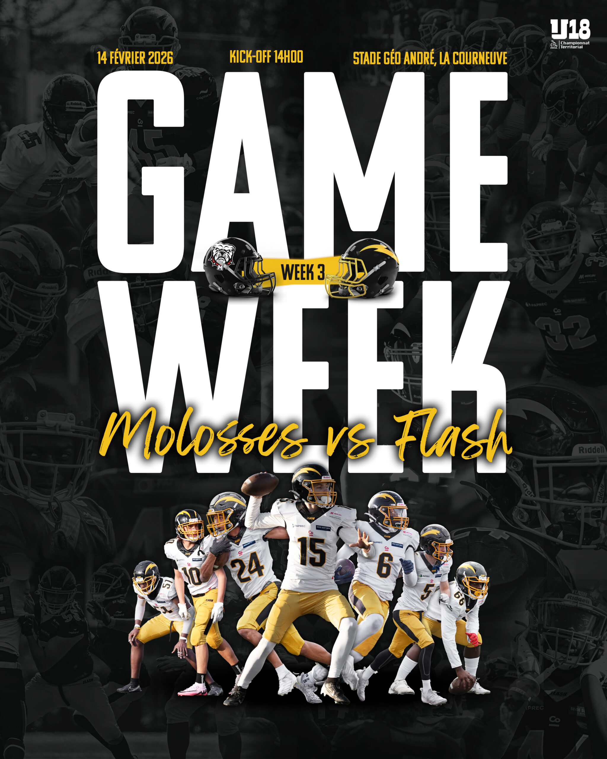 Le 14 février à 19h00, venez assister au 2ᵉ match du championnat national Élite « Casque de Diamant 2026 » qui opposera le Flash aux Black Panthers au Stade Géo André à La Courneuve !