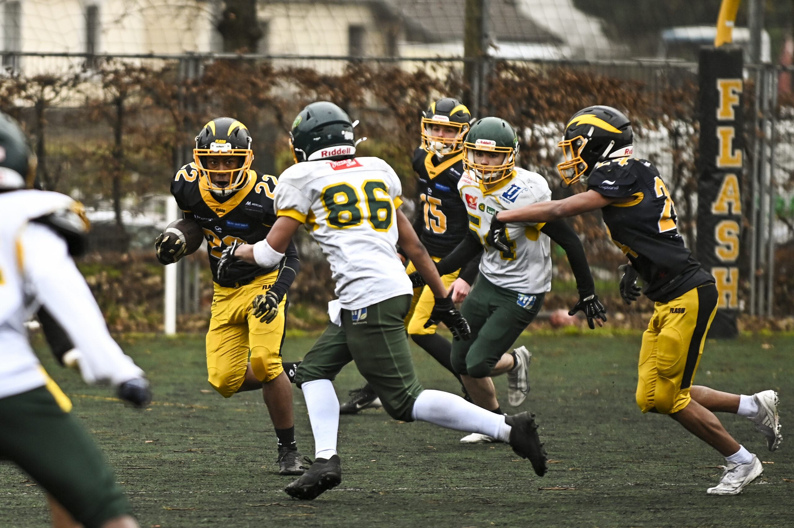 Enfin, à 14h00, l’équipe U18 clôturait ce week-end sportif en recevant les Caïmans du Mans à l’occasion de la 2e journée du championnat territorial U18 à 11. Les jeunes du Flash prenaient rapidement l’ascendant, menant 7-0 à la mi-temps. Les Caïmans revenaient au score au troisième quart-temps (7-6), mais le Flash faisait preuve de caractère pour reprendre le large et s’imposer 23-6 au coup de sifflet final.