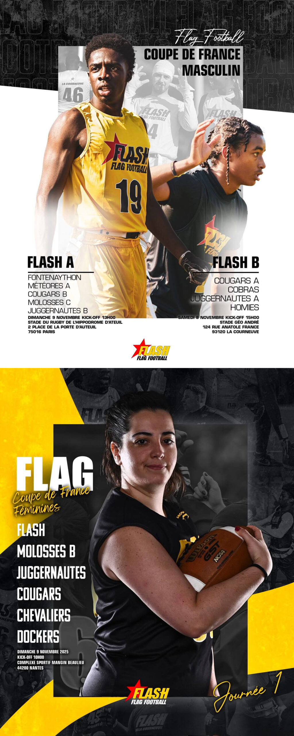 Les 8 et 9 novembre prochains, nos trois équipes seniors débuteront leur parcours dans la Coupe de France de Flag. Ce premier week-end de compétition marquera le lancement d’une nouvelle aventure nationale pour nos formations masculine et féminine.