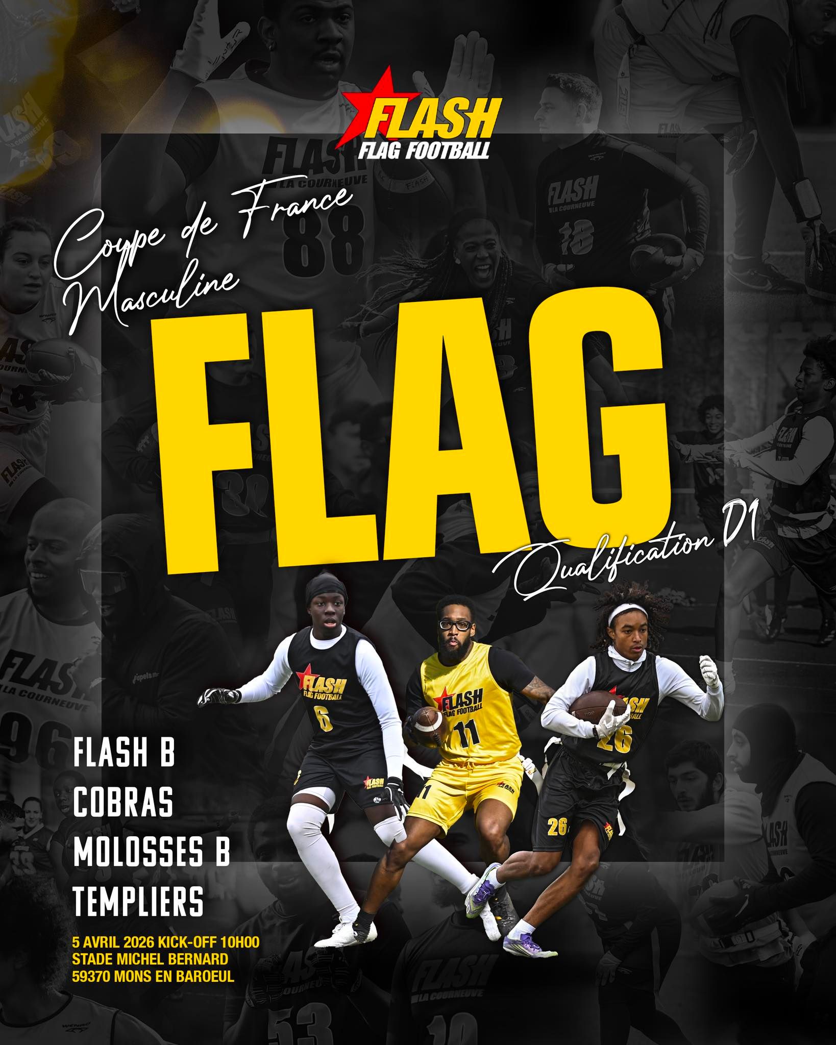 Ce dimanche 5 avril, notre équipe B se déplacera chez les Cobras de Mons-en-Barœul dans le cadre de la journée de qualification D1. Elle y affrontera également les Molosses B ainsi que les Templiers d’Élancourt.
